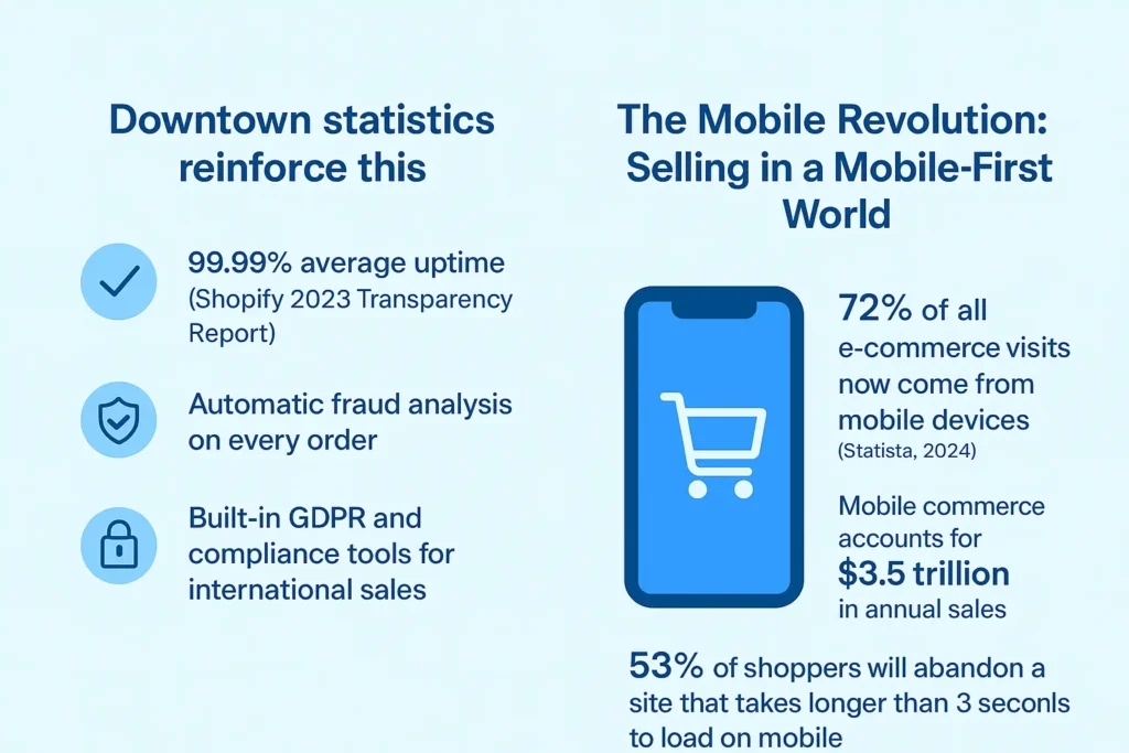 - 99.99% average uptime (Shopify 2023 Transparency Report)
